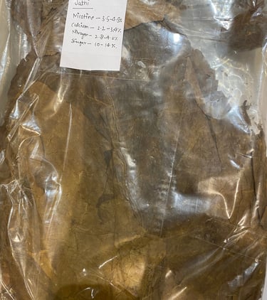 Motihari is known for its mild, smooth flavor with a slightly sweet undertone, making it a highly sought-after variety. It has a high nicotine content, providing a robust experience, and its excellent burning characteristics ensure a consistent performance in various tobacco products. Motihari tobacco is commonly used in premium cigarette blends, where its smooth flavor and even burn are highly valued. It is also widely used in the production of bidi, where it complements other tobaccos in the blend, as well as in chewing tobacco and smokeless tobacco products due to its strong nicotine content. Known for its versatility and quality, Motihari tobacco is favored in both domestic and international markets.